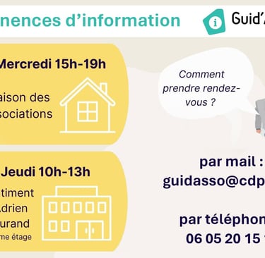 Nous proposons 2 permanences par semaine, sur rdv, pour accueillir les associations qui ont besoin :