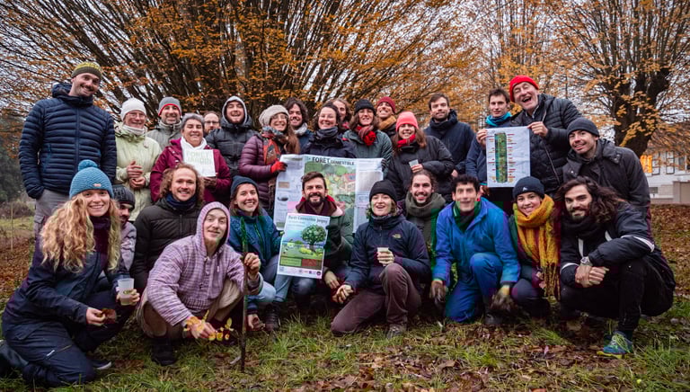 Plusieurs chantiers de plantation et d'aménagement des terrains, se sont succédés à l'automne 2024 puis printemps et automne 2025 avec près d'une centaine de bénévoles mobilisés.