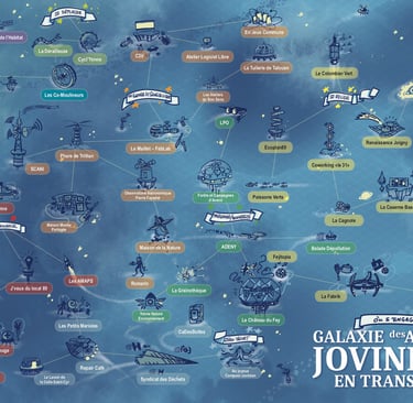 Nous proposons des visites ou de présentation appuyée sur la Galaxie des acteurs jovinien des transitions à la demande.